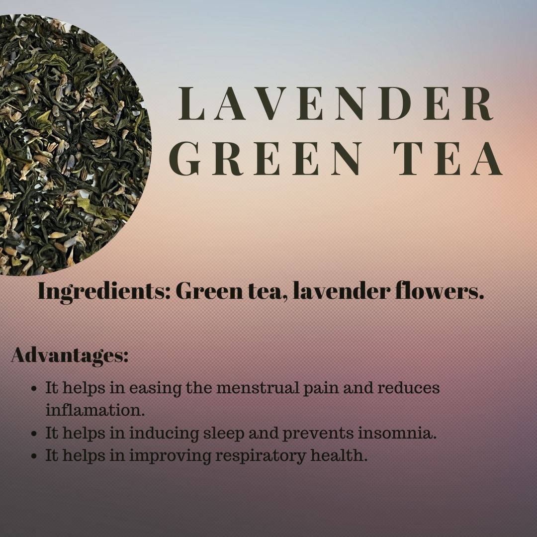 Indulge in the captivating allure and exquisite taste of our Lavender Green Tea, and experience the perfect fusion of health and flavor in every cup. Elevate your daily tea ritual with the natural goodness of green tea and the soothing essence of lavender.